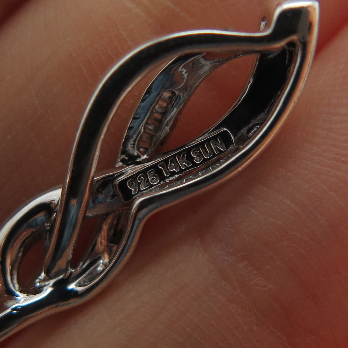 SUN 925 Sterling Silver 14K Gold Real Diamond Twisted Charm Pendant