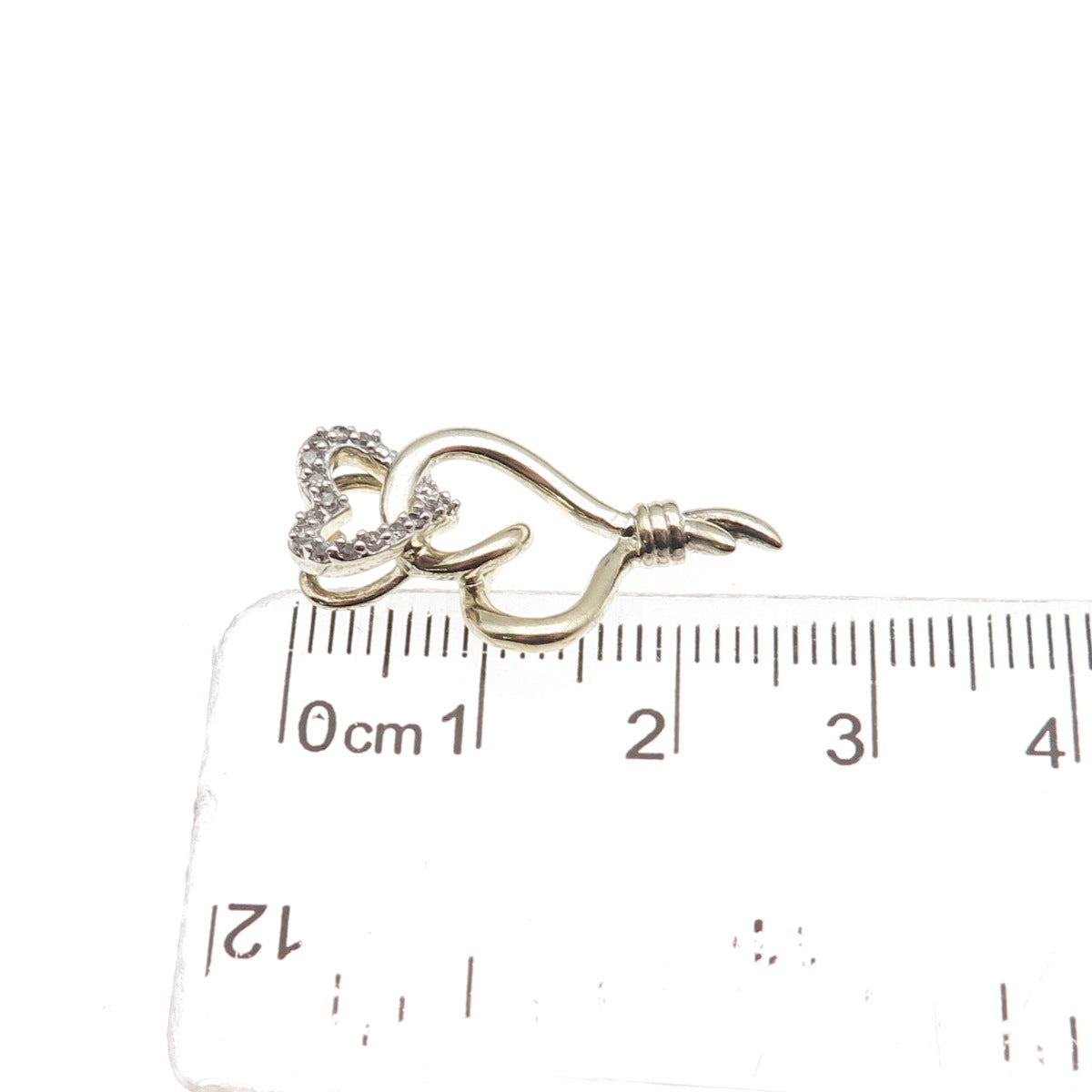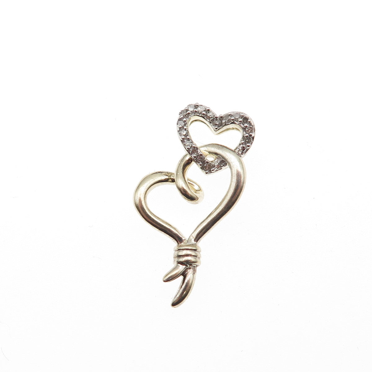 Sun 925 Sterling Silver 2-Tone Real Diamond Double Heart Slide Charm Pendant