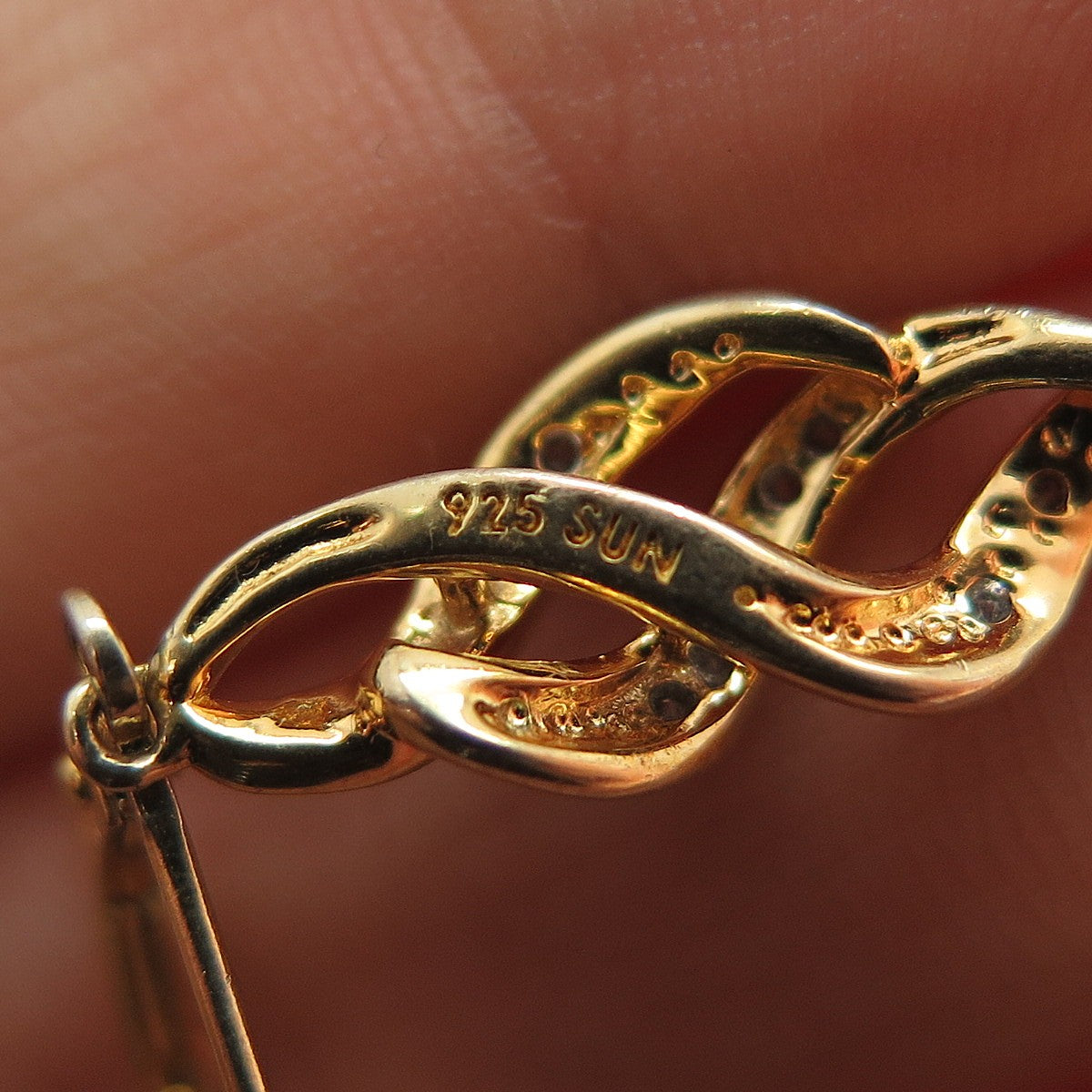 SUN 925 Sterling Silver Gold Plated Real Diamond Twisted Dangle Earrings