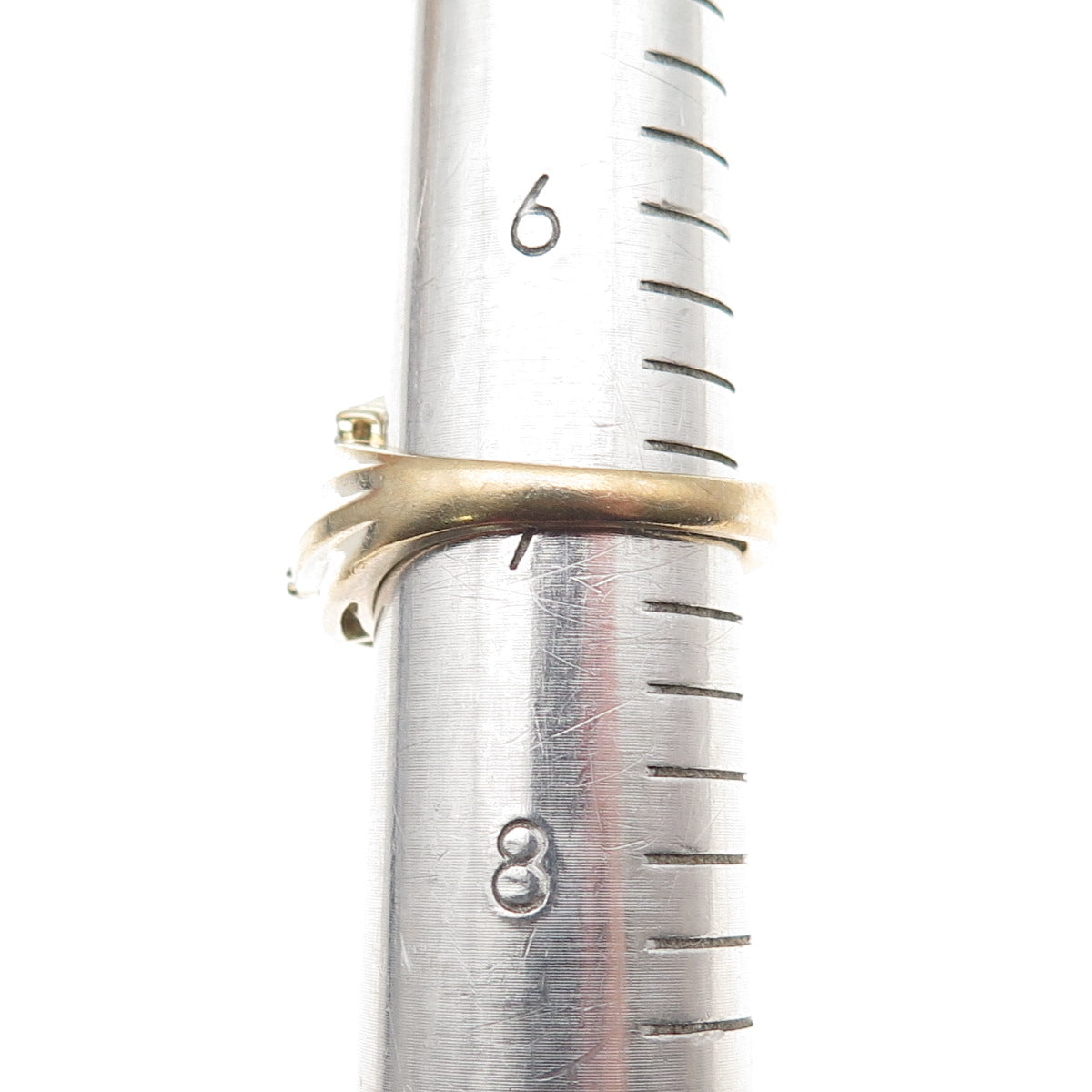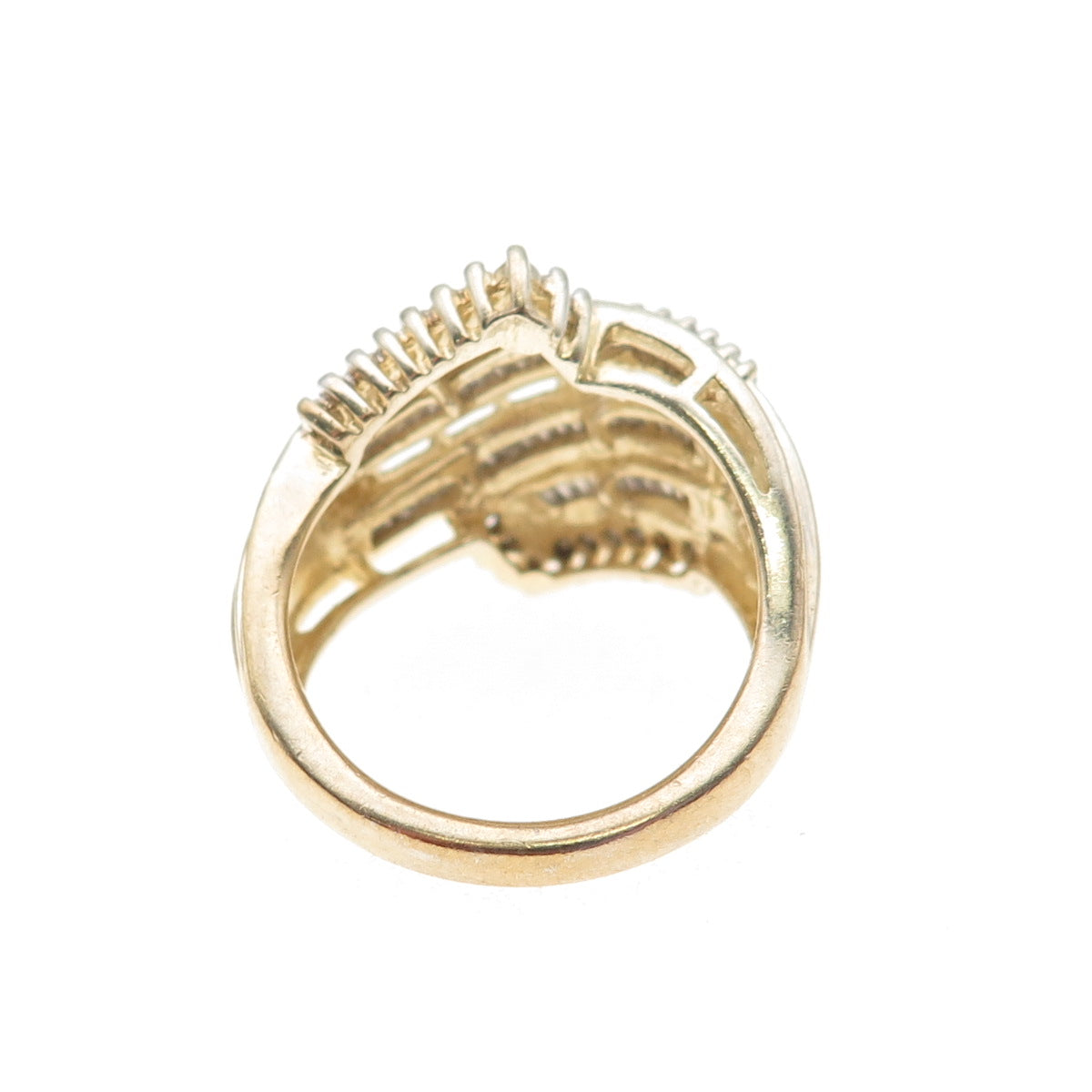 Sun 925 Sterling Silver Gold Plated Real Round & Emerald-Cut Diamond Ring Size 7