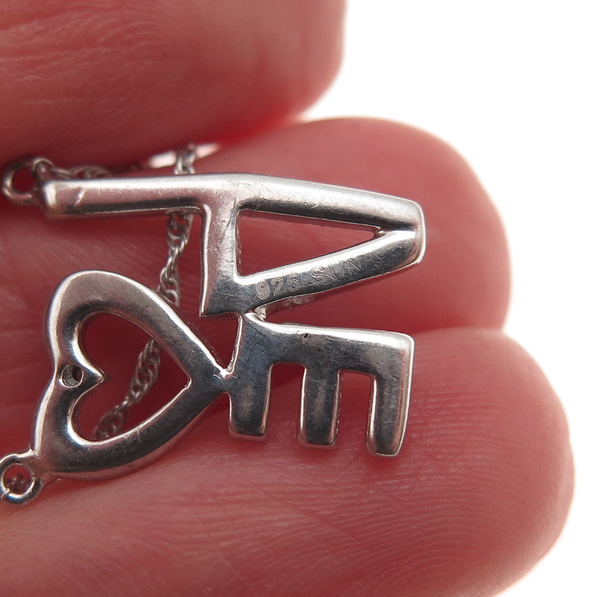 Sun 925 Sterling Silver Italy Real Diamond Accent Love Cable Chain Necklace 18"