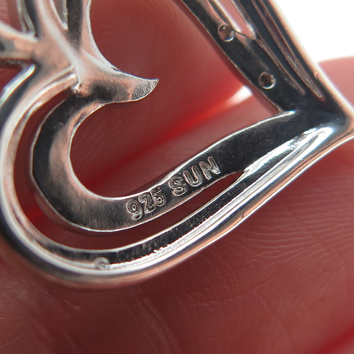 SUN 925 Sterling Silver Real Diamond Accent Double Heart Minimalist Pendant