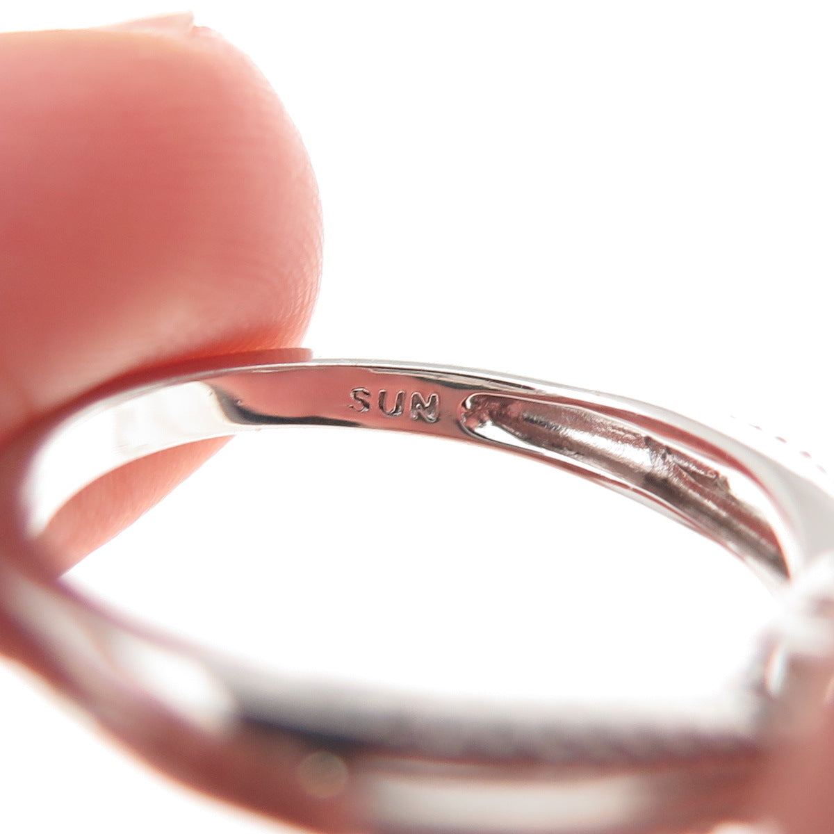 Sun 925 Sterling Silver Real Round-Cut Diamond Engagement Ring Size 7