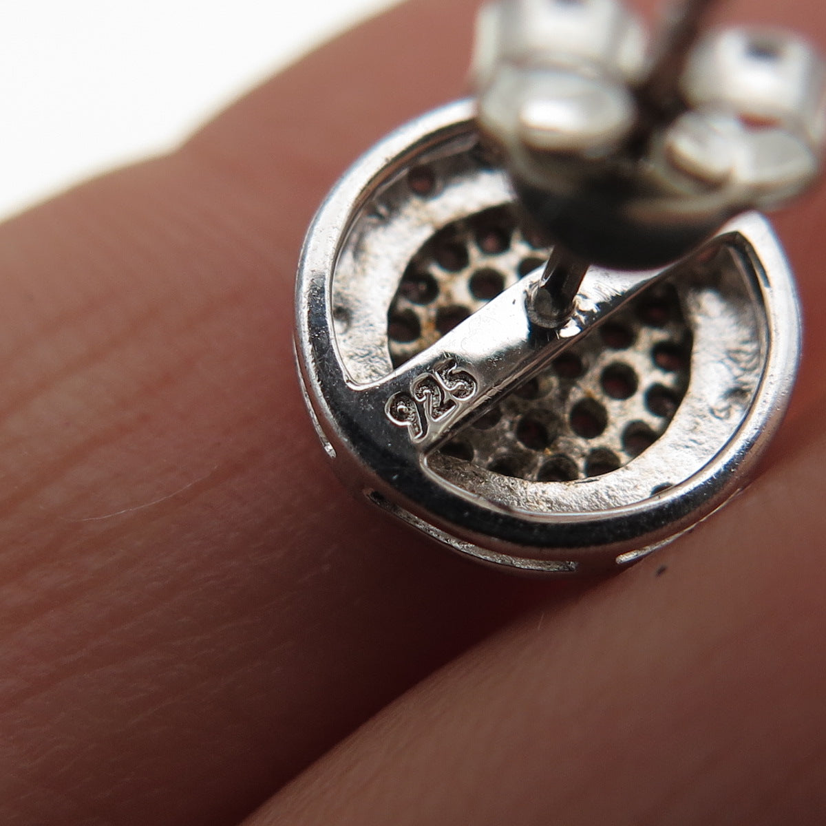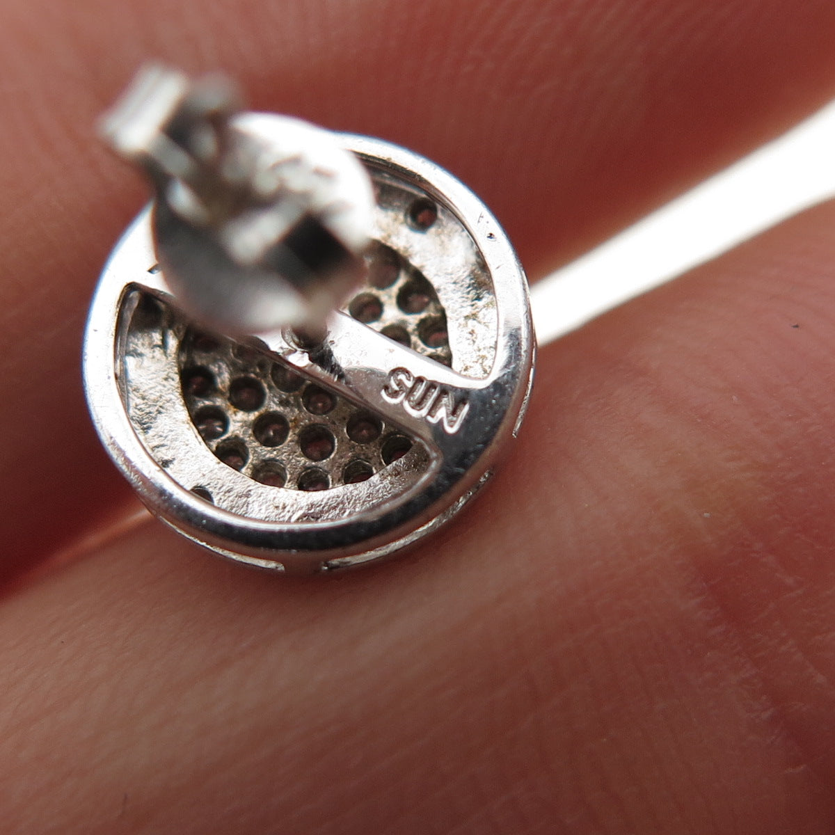 SUN 925 Sterling Silver Real Round-Cut Diamond Stud Earrings