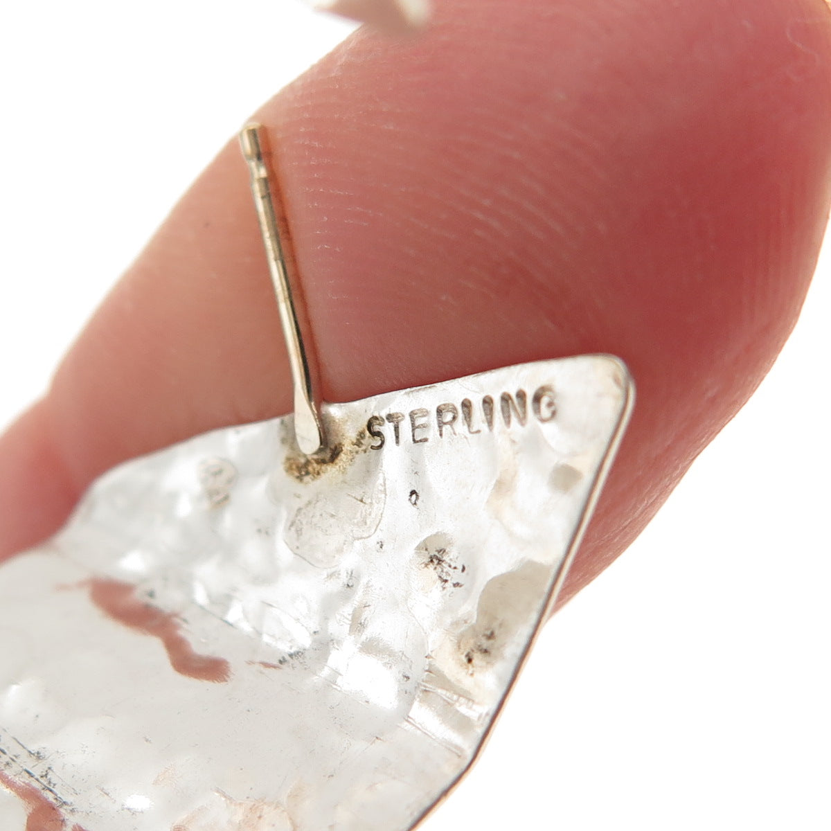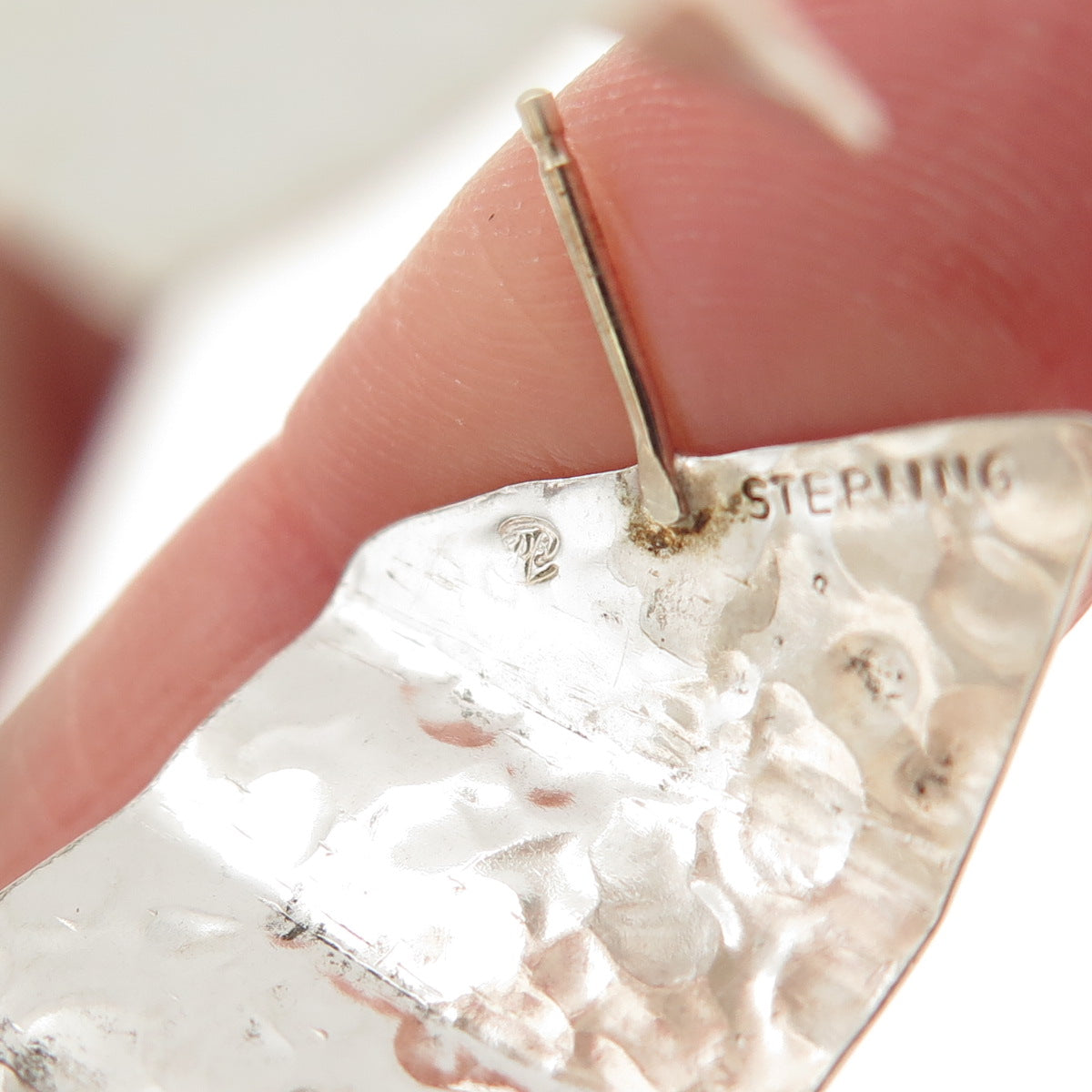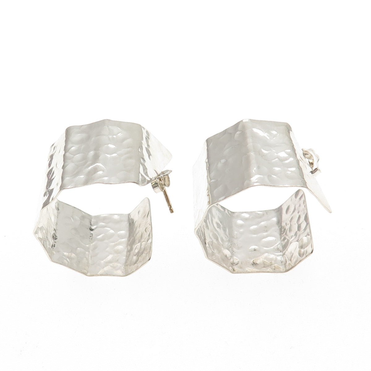 SUZENNE 925 Sterling Silver Gold Posts Vintage Modernist Hammered Hoop Earrings