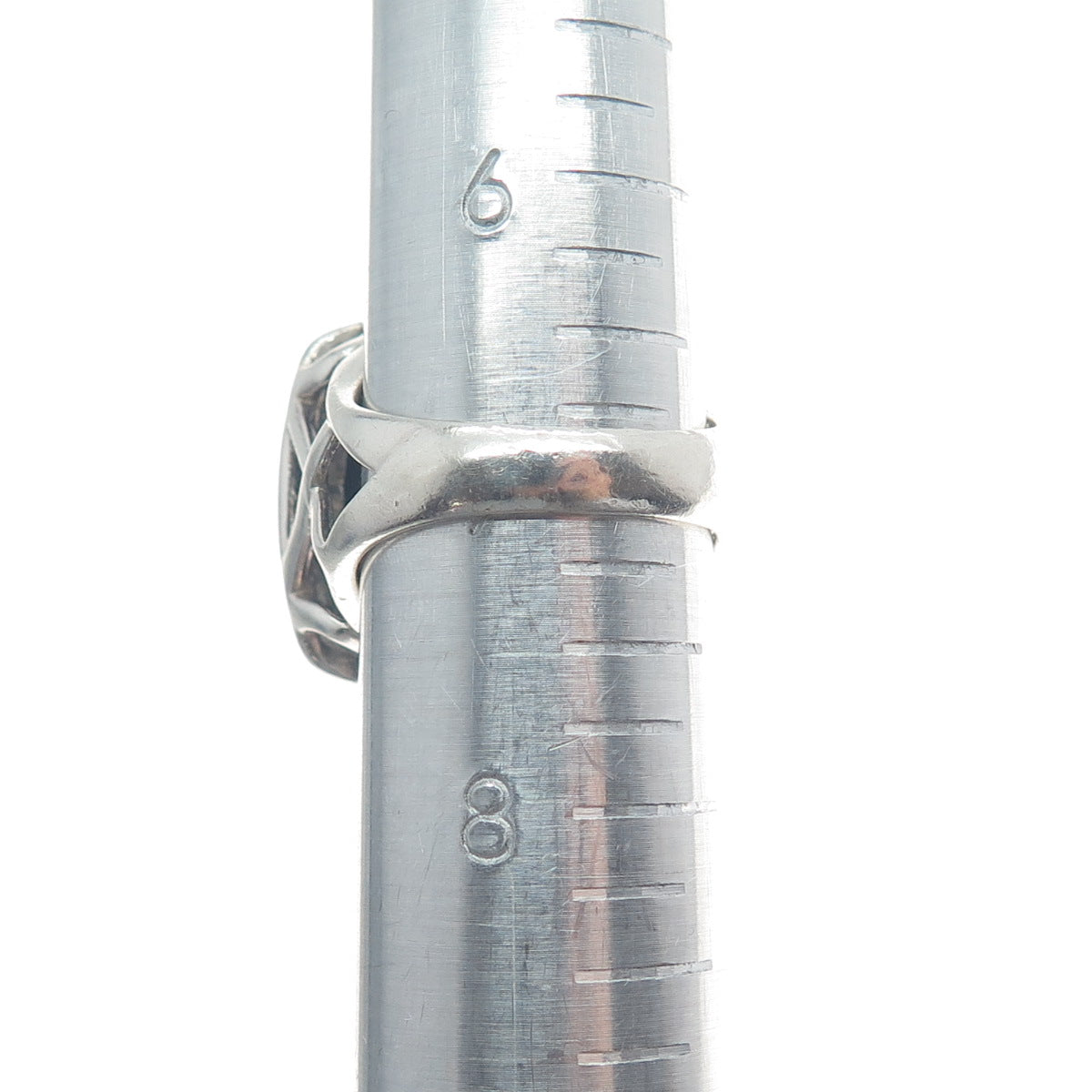 SX SALLY C 925 Sterling Silver Vintage Real Black Onyx Woven Ring Size 7