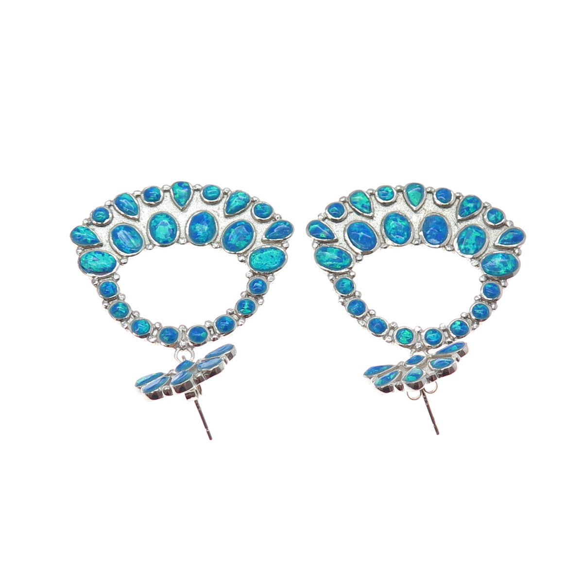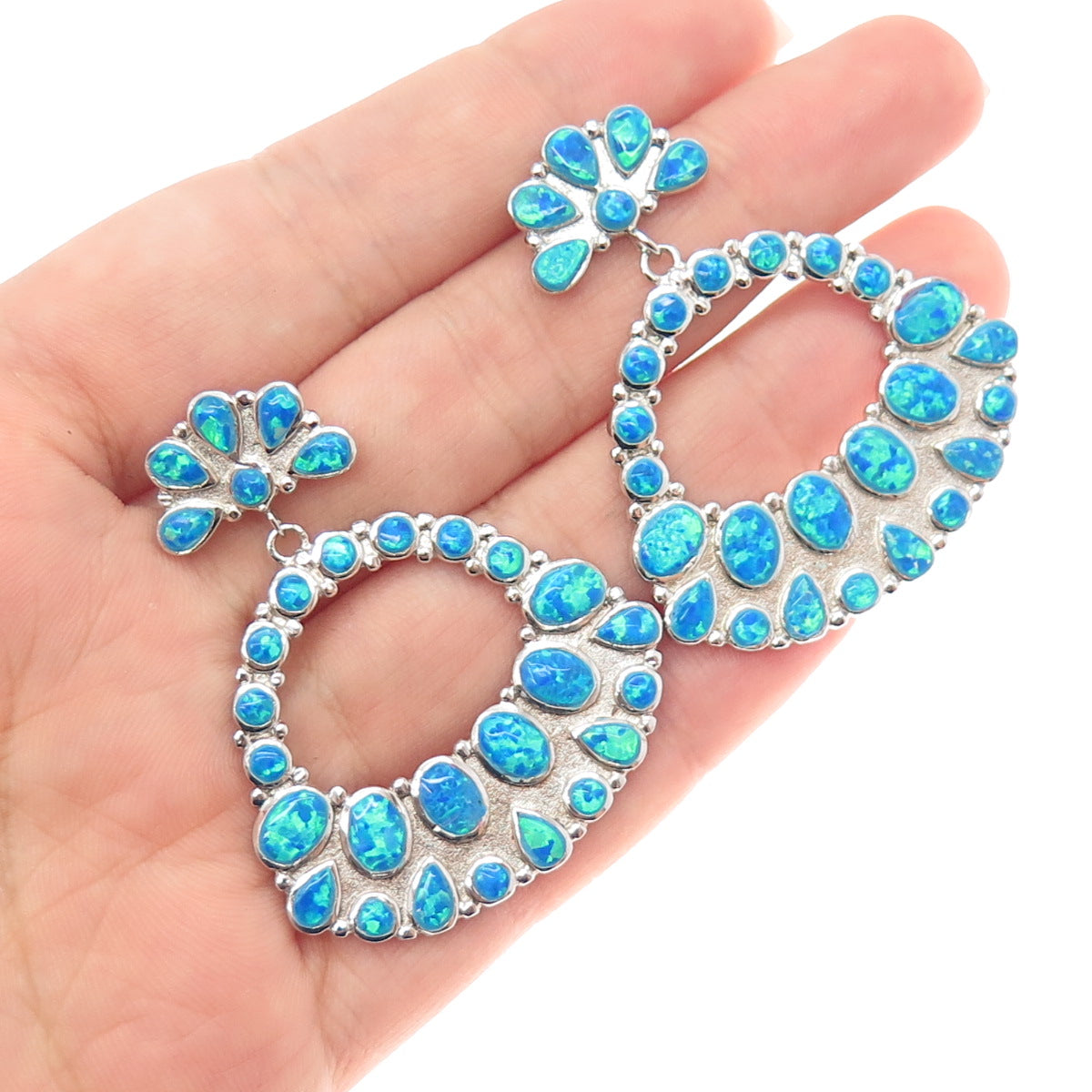 SX SALLY C 925 Sterling Silver Vintage Real Opal Modernist Dangle Earrings