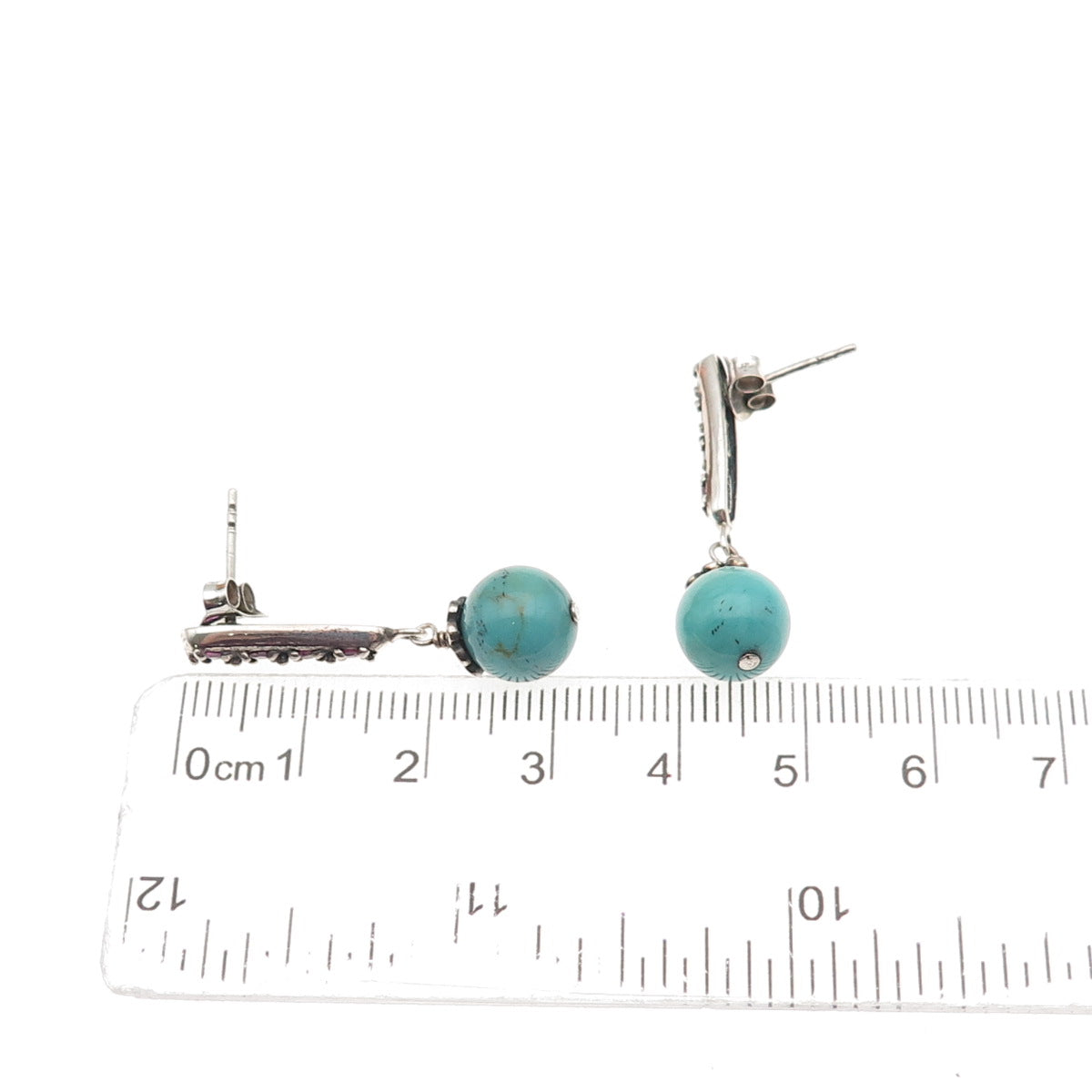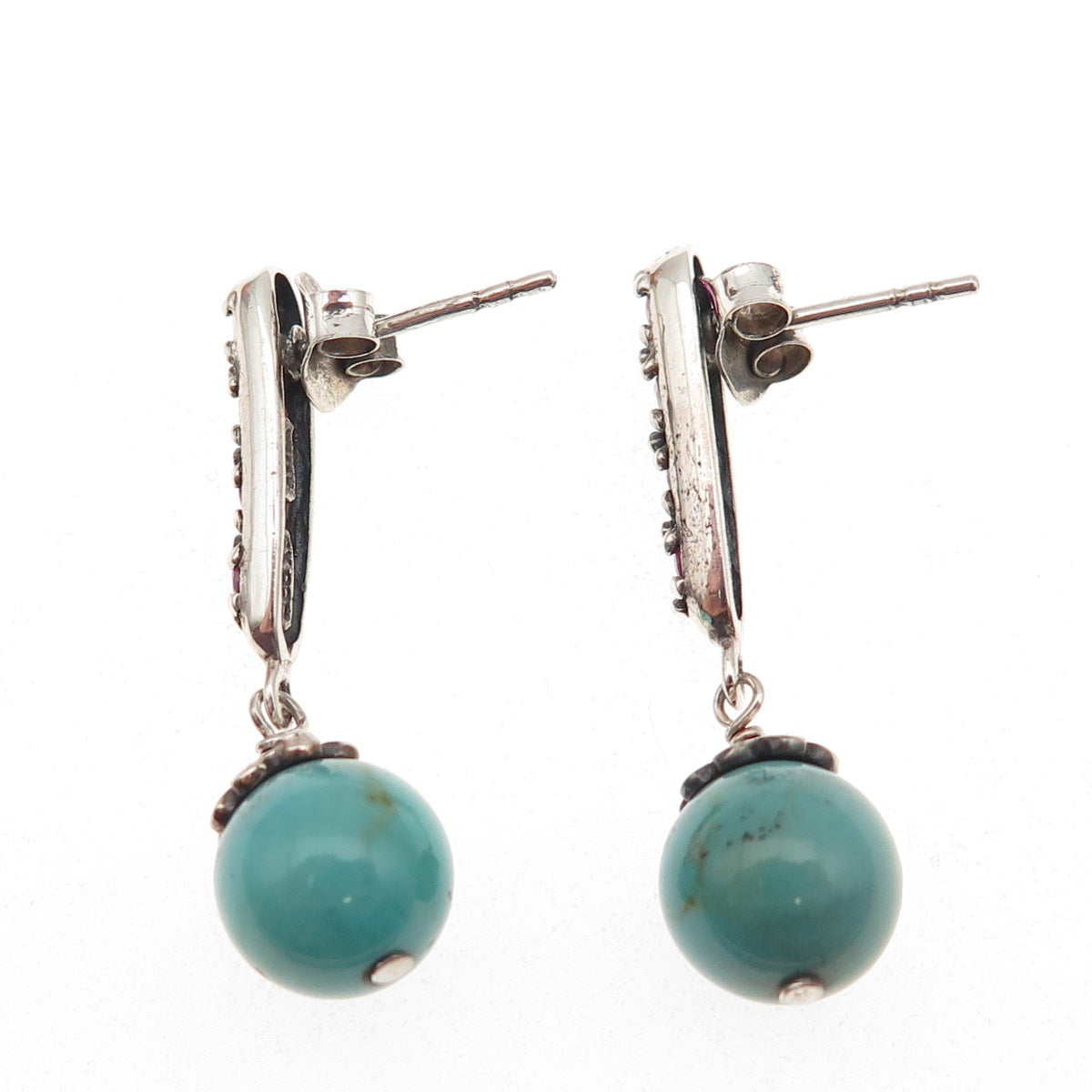 SX Sally C 925 Sterling Silver Vintage Real Ruby & Turquoise Dangle Earrings