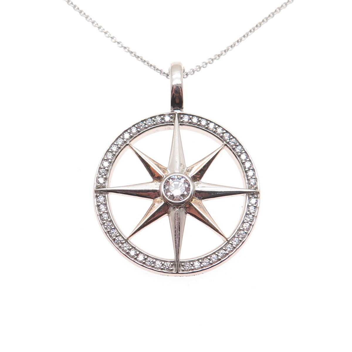 SYLVIA TOLEDANO Sterling Silver 2-Tone C Z North Star Cable Chain Necklace 18"