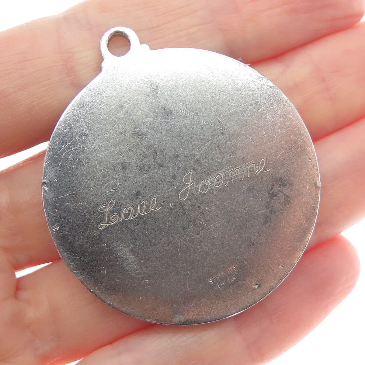 THEDA 925 Sterling Silver Vintage Engraved Jesus Religious Medal Pendant