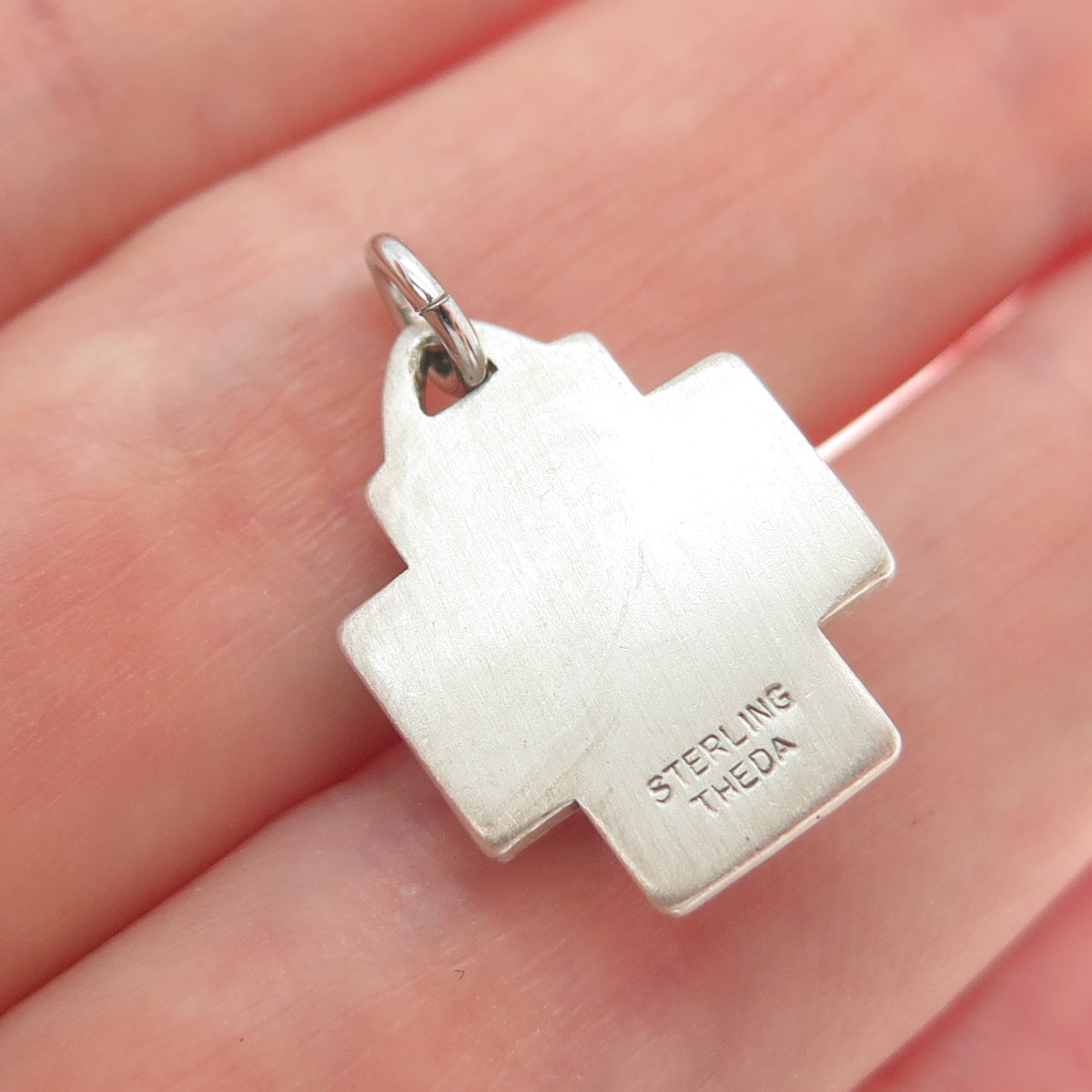 THEDA 925 Sterling Silver Vintage Jesus Cross Religious Pendant