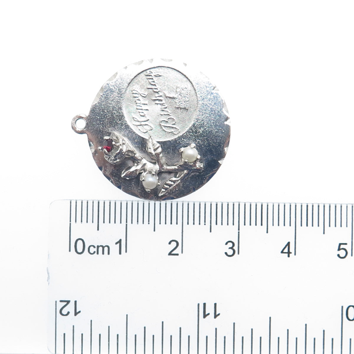 TOWN & COUNTRY 925 Sterling Vintage Real Pearl Rhinestone Happy Birthday Pendant