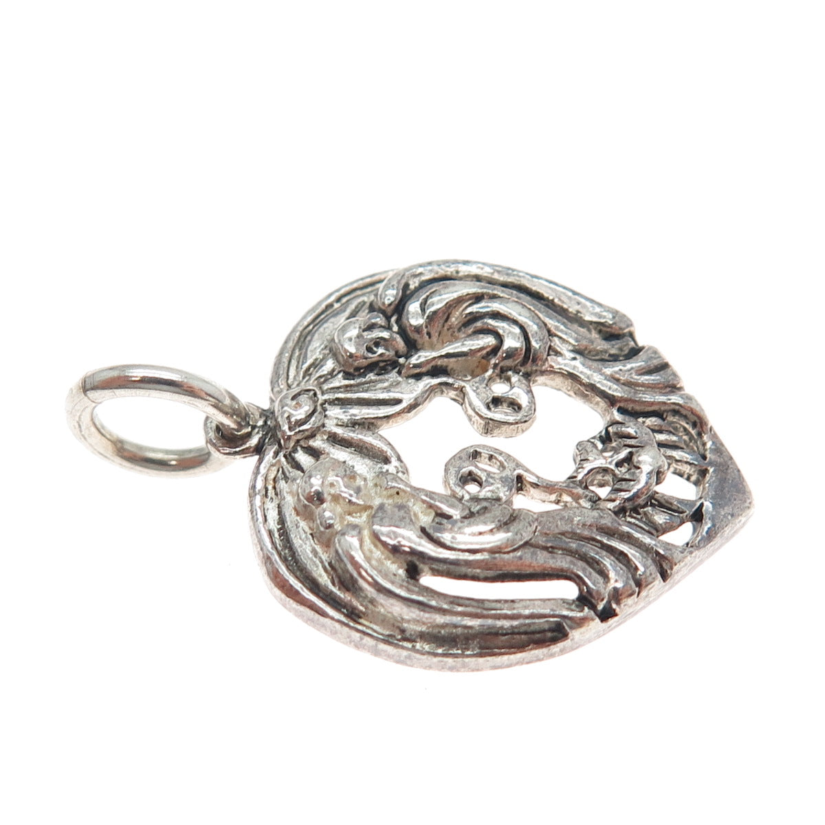 TRU BELIEVERS 925 Sterling Vintage Reflection of Christ Heart w/ Angels Pendant