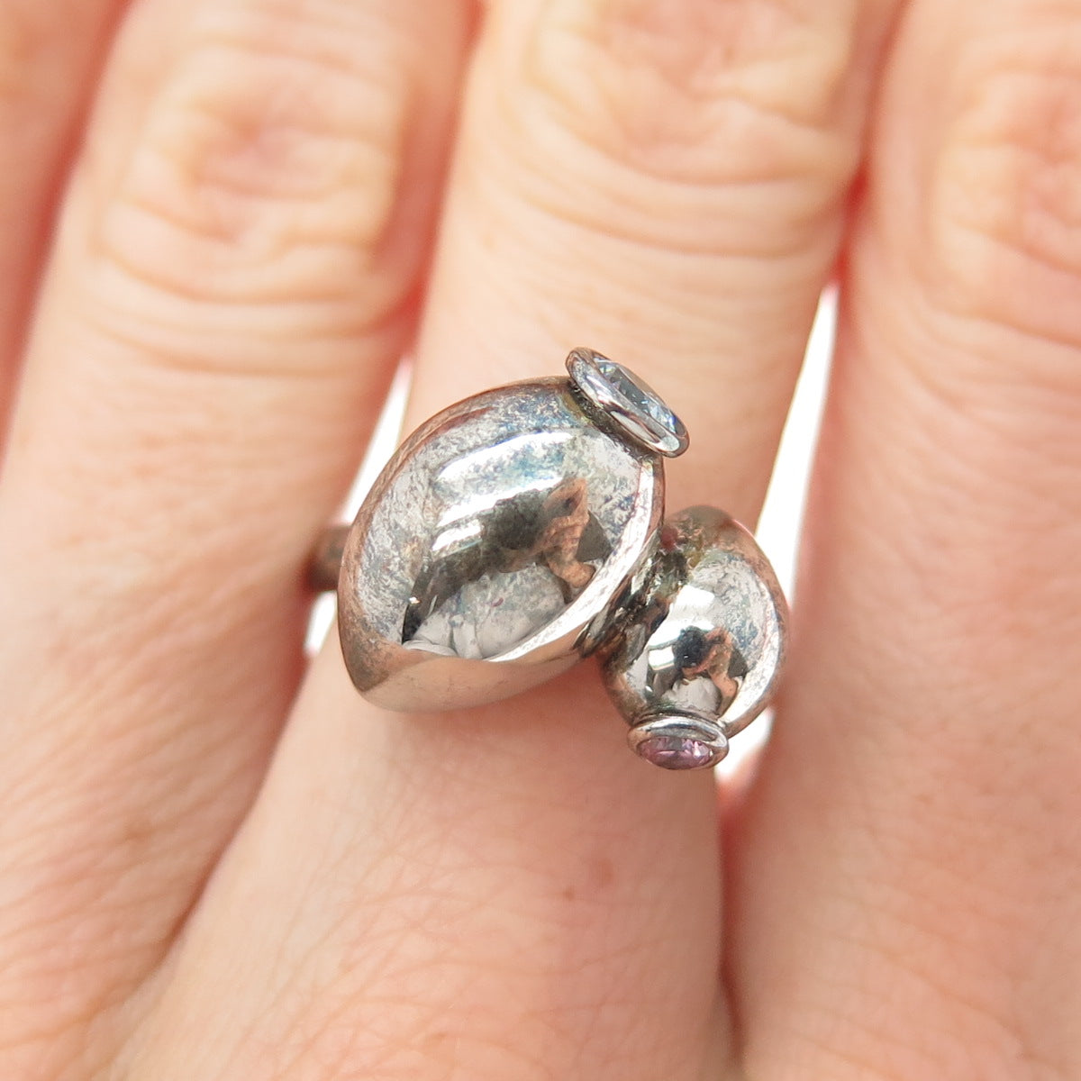 TSIKOLIA 925 Sterling Silver Blue & Purple C Z Vase Oxidized Ring Size 6.5