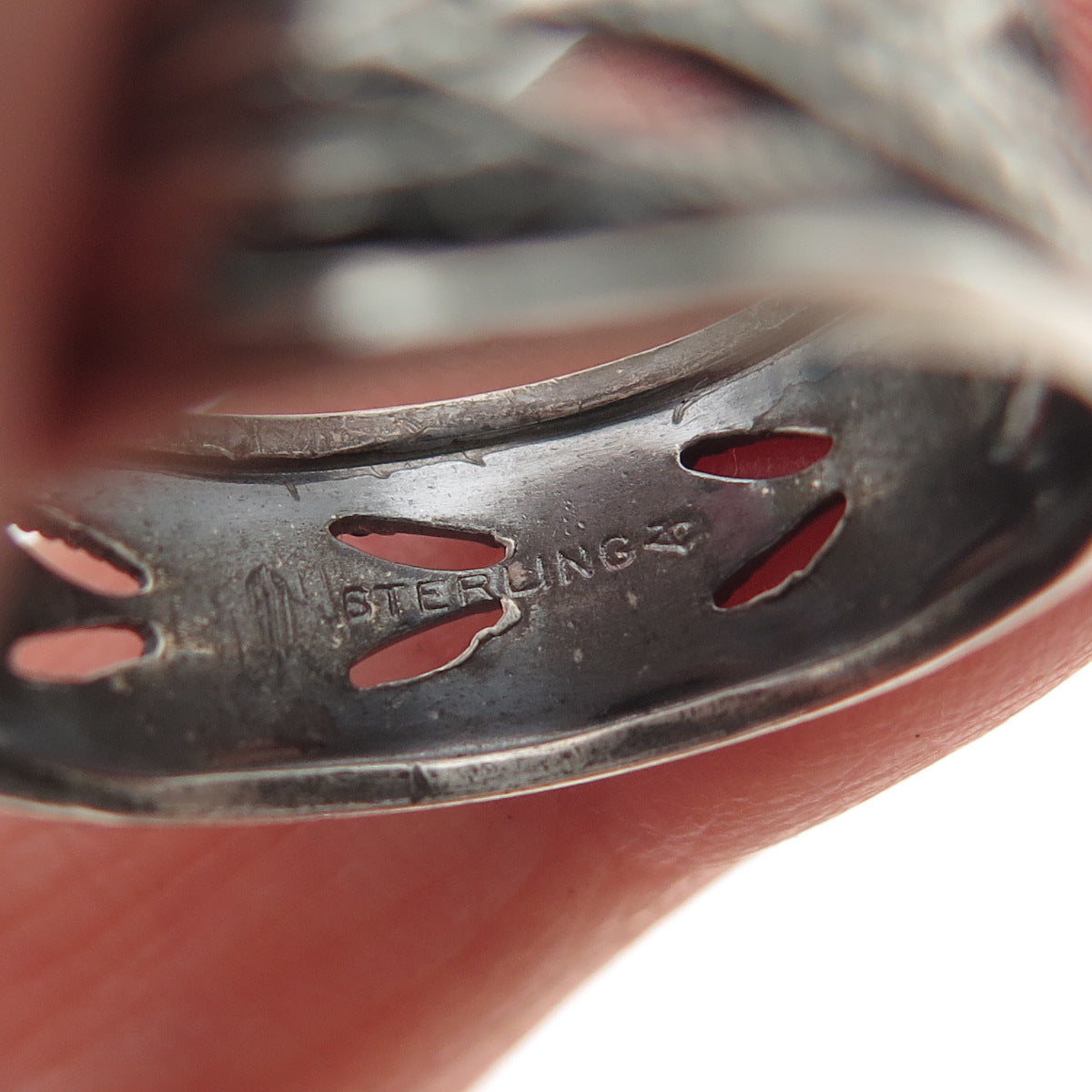 VARGAS 925 Sterling Silver Antique Art Deco Dotted Oxidized Band Ring Size 8.25