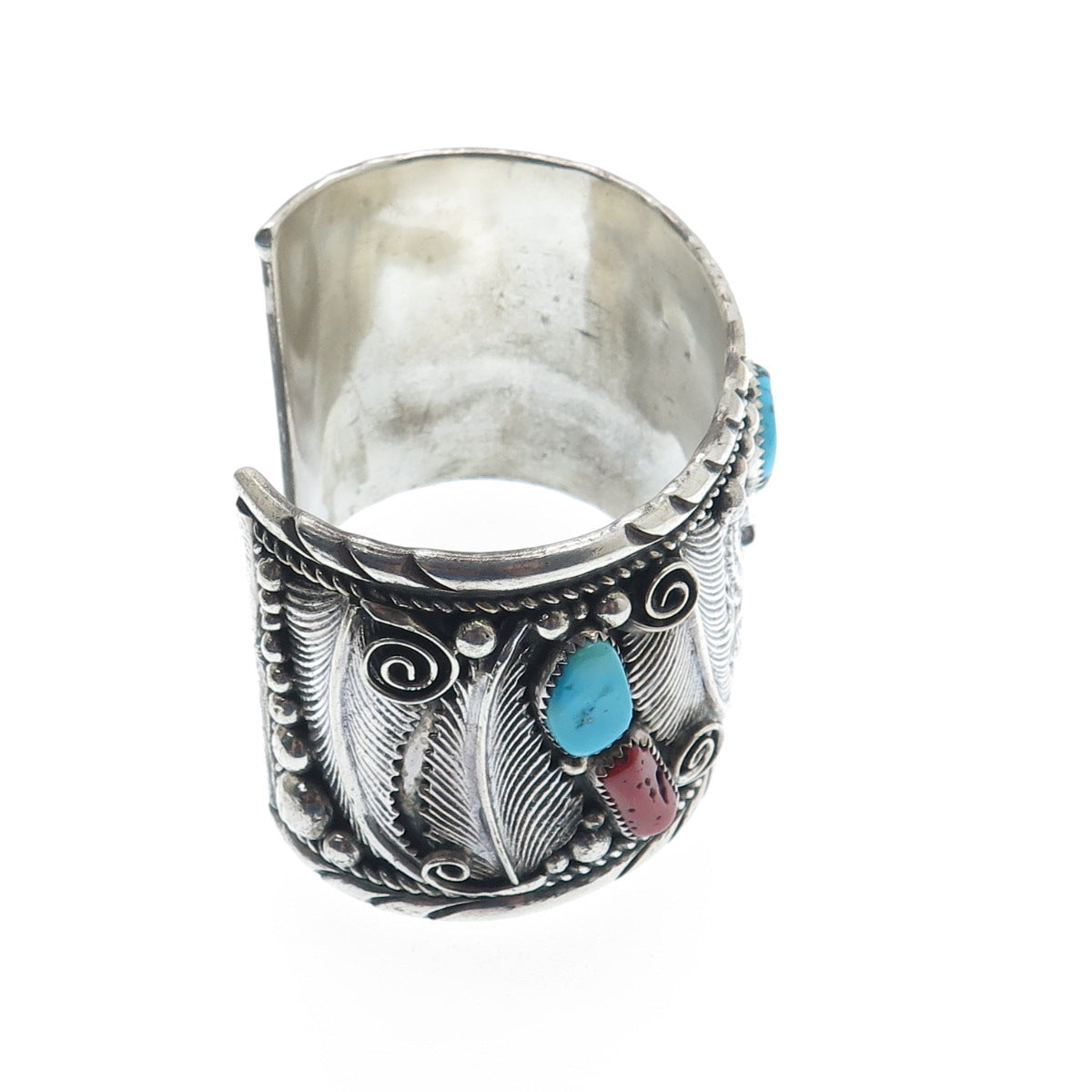 VERNA BLACKGOAT NAVAJO Old Pawn 925 Sterling Turquoise Coral Eagle Bracelet 7.5"