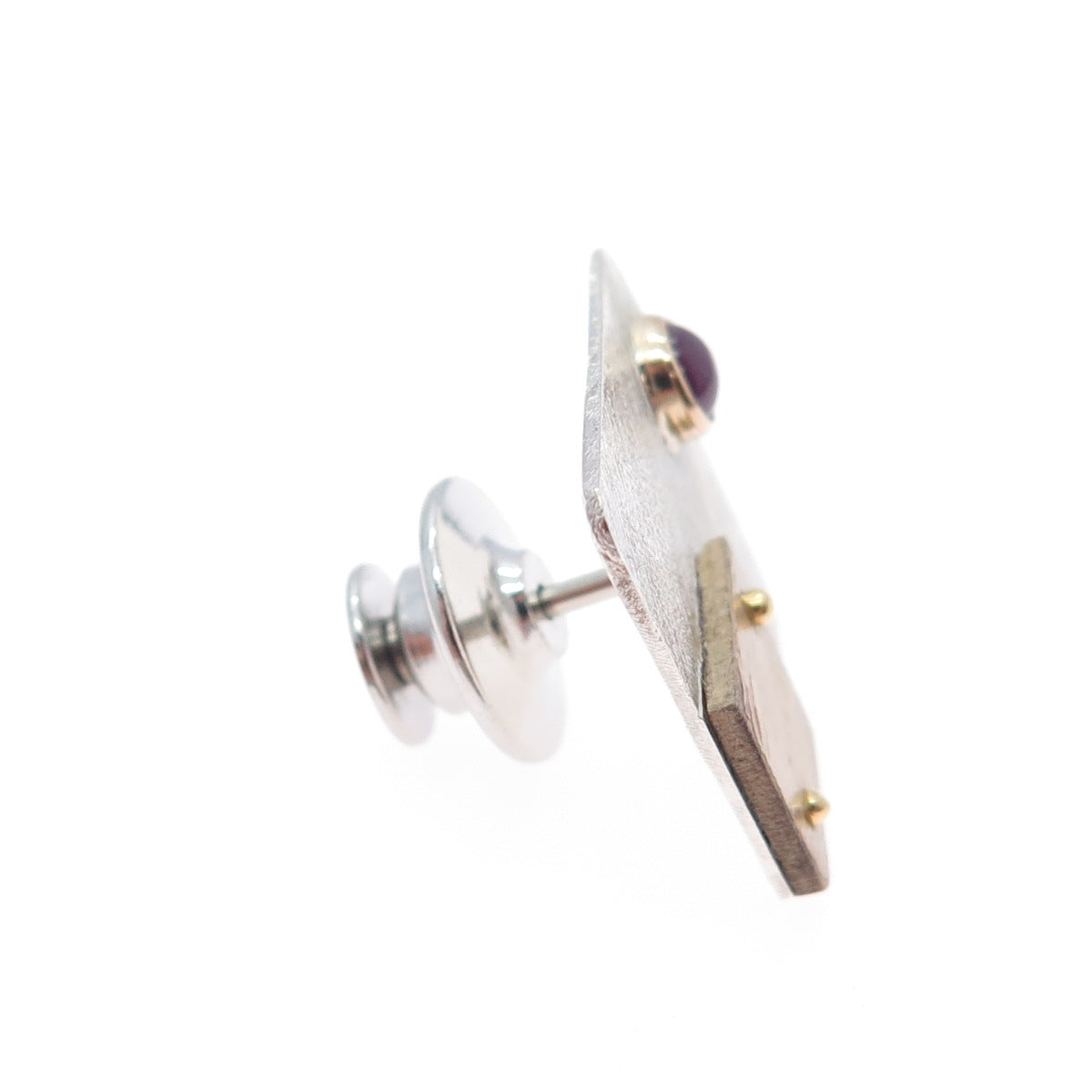 VICTOR ALFARO 14K Gold 925 Sterling Silver Vintage Real Ruby Modernist Lapel Pin