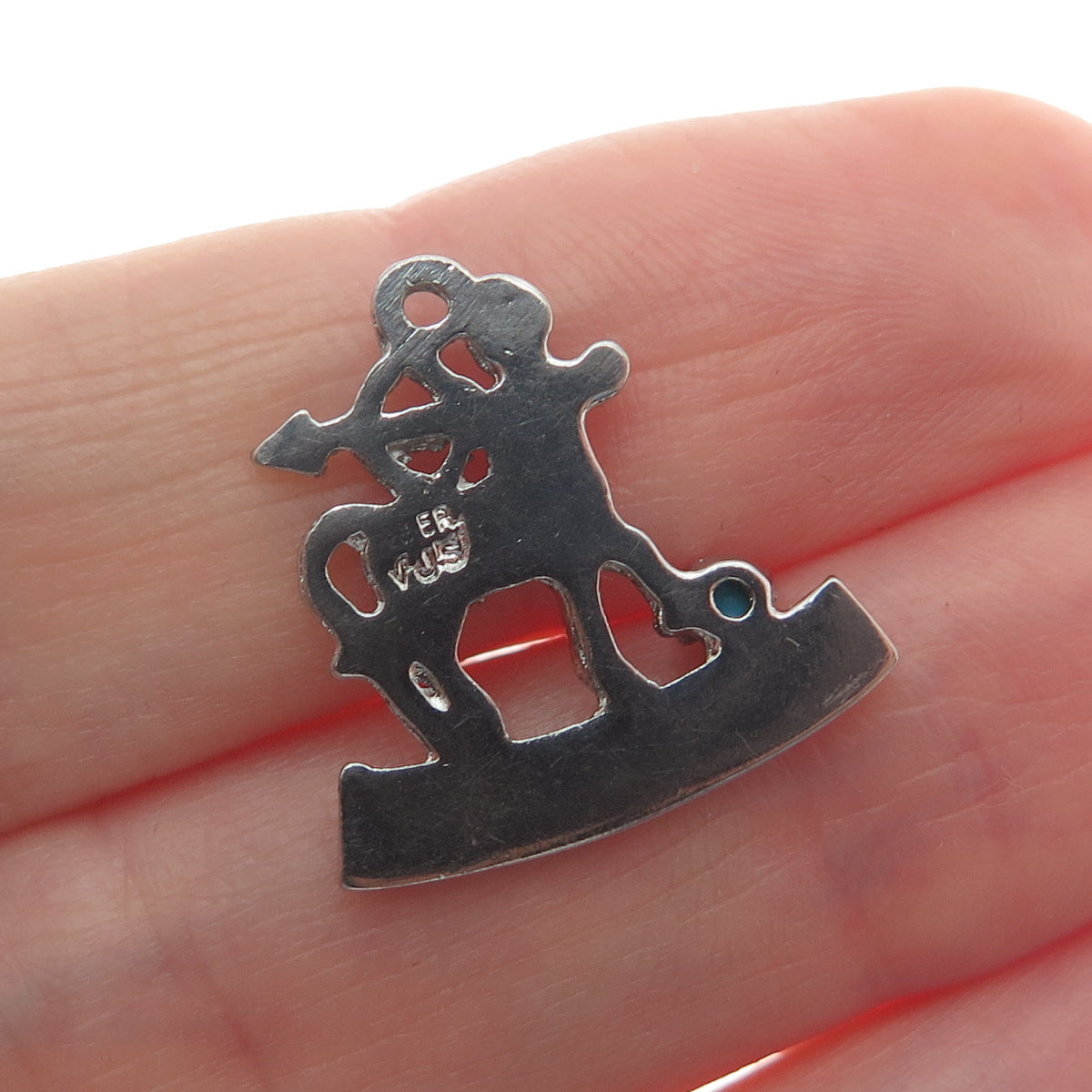 VJS Vintage Gold Silver 925 Sterling Real Turquoise Sagittarius Zodiac Pendant