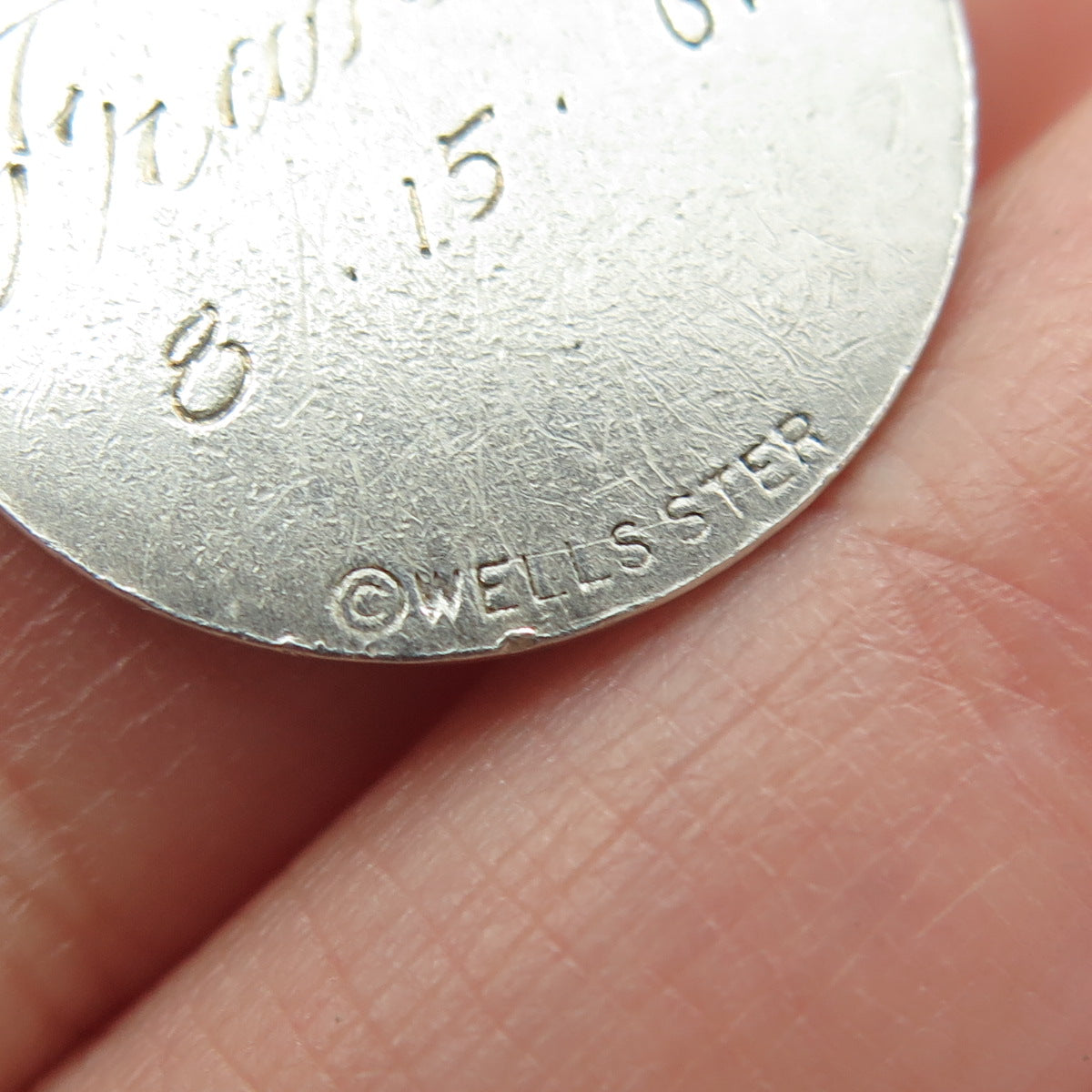 WELLS 925 Sterling Silver Vintage Enamel Engraved Happy Birthday Cake Pendant