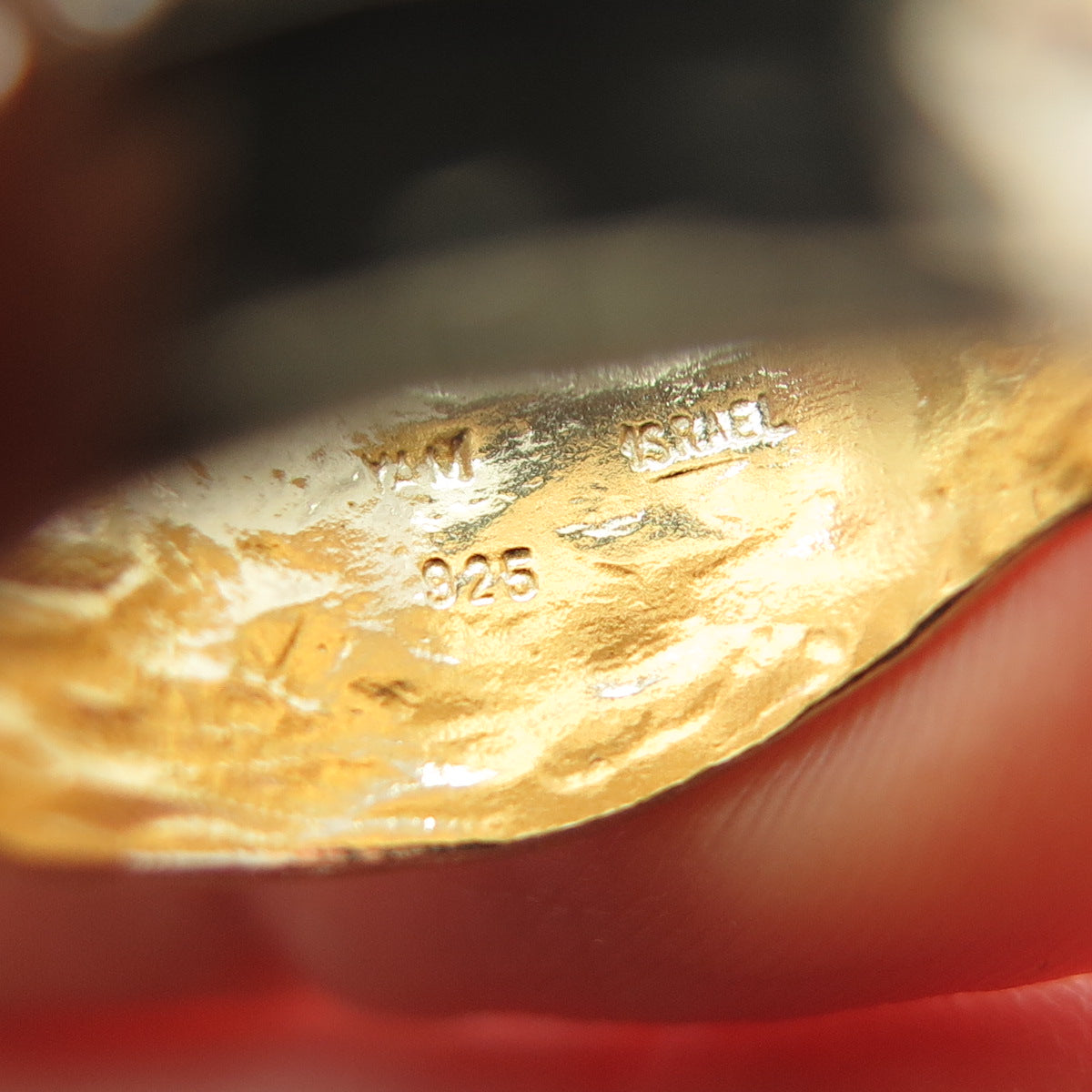 YUVAL & MICHAL Sterling Gold Plated Vintage Israel C Z Hummered Ring Size 7.25