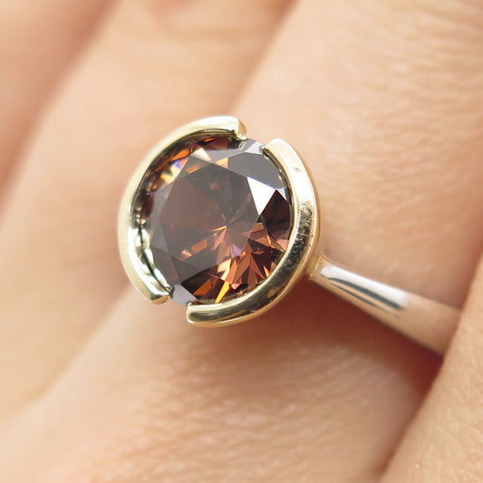 925 Sterling Silver 2-Tone Round-Cut Cognac & White C Z Ring Size 5